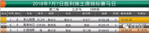 冠军:“泰山雄鹰” 马主:黄庆才 骑师:敖白云