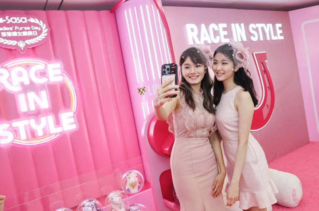 入场人士盛装出席莎莎妇女银袋日。是日设「最佳服饰大奖」比赛。每位入场人士均获赠莎莎妇女银袋日纪念襟针。