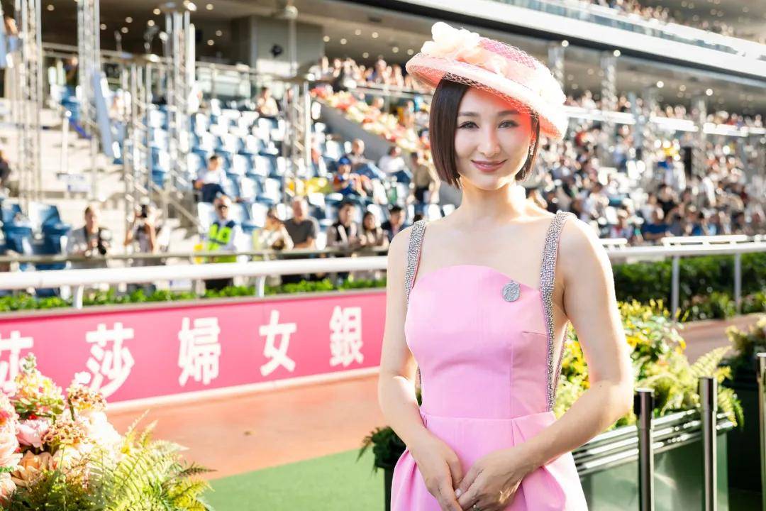 「莎莎妇女银袋日2025」形象大使高海宁在莎莎妇女银袋颁奖仪式上,致送纪念杯予冠军马匹“安遇”的骑师田泰安。