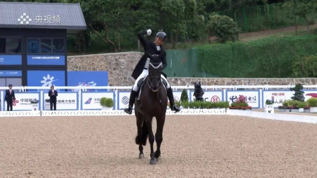 图:新疆队刘涛赛后为马匹“KNOX VI LLE TT”完美的表演喝彩