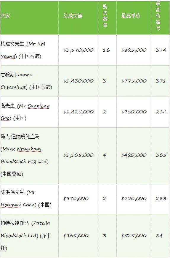 蓝斯当公园(Landsdowne Park)以4匹售出马匹均价277,500新币(折合人民币约112万元)成为均价最高供应商;“至高无极”(I Am Invincible)则以三匹子嗣均价431,667新币(折合人民币约174万元)成为均价最高种公马。
