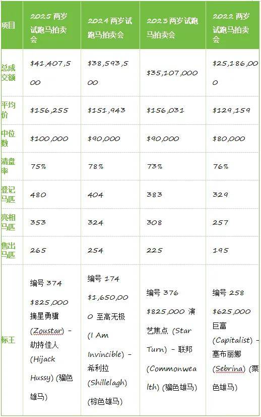 2025两岁试跑马拍卖会统计数据(截至销售结束)