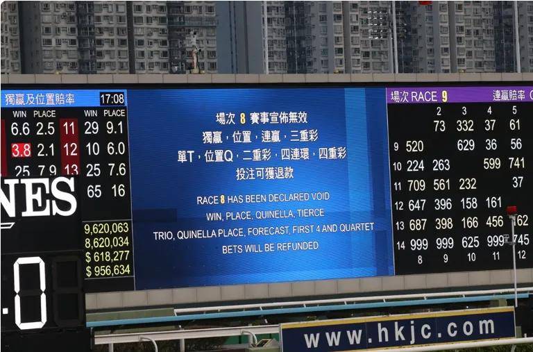 香港马会行政总裁表示,取消赛事是因人为意外所致,他对此感到非常失望。应家柏指出,尽管此次事件实属不幸,取消赛事也看似是正确的决定,但他强调所有流程均有既定程序——事实上每次开闸后都设有胶带,本应在所有马匹离开后方可移开,然而当日工作人员未能按此执行。因此,应家柏对此表示极为遗憾,并将采取相应行动。此外,关于第八场赛事的退款安排,将全额退还投注金额(1.6亿港元)。