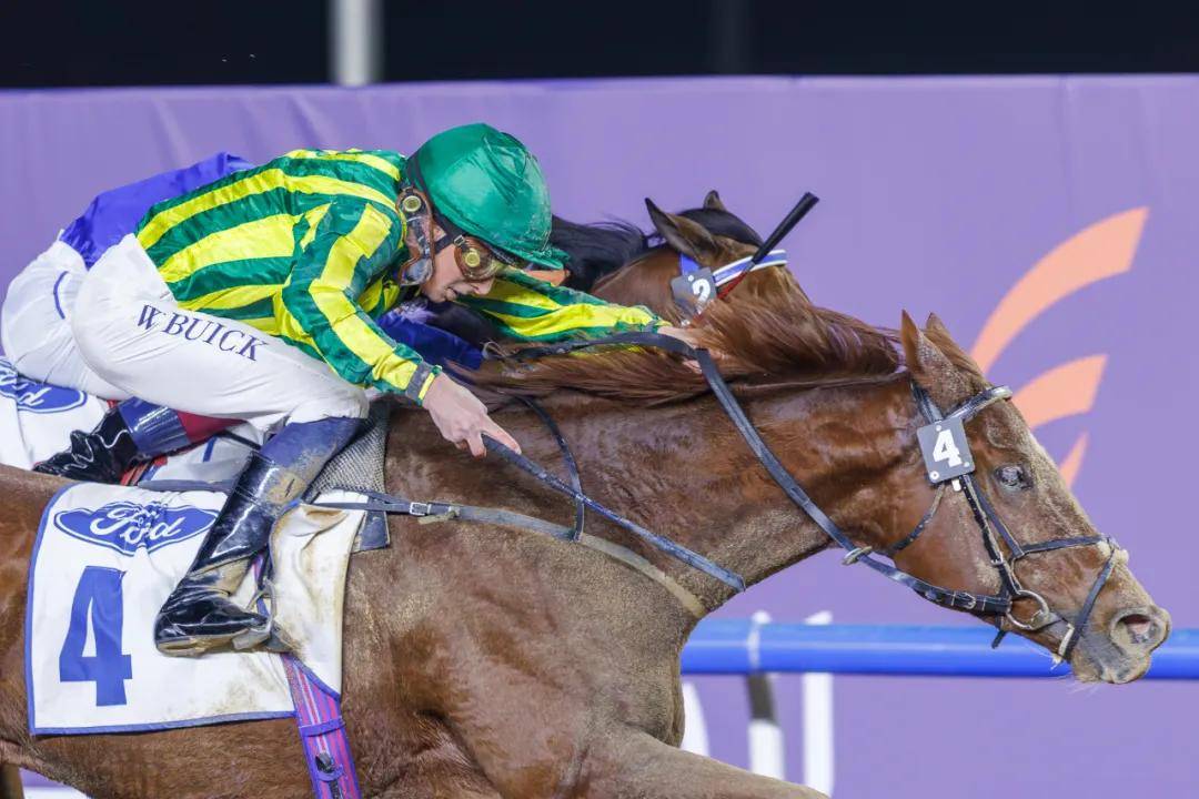 新赛季重返迈丹马场的骑师布宜学,在开场连续两场落败奥斯雅后,终于在第5场1400米3岁以上马匹泥地让赛(80-100)中策骑纪斯福及纪兆丰马房首次在泥地赛道上亮相的4岁阉马“TELEMARK”,凭借最后230米的发力反超,最终仅以0.17马位的微弱优势击败了长时间领跑的“KHANJAR”获胜。这不仅是布宜学本赛季的首胜,也是纪斯福及纪兆丰这对父子练马师在本赛季的首胜。