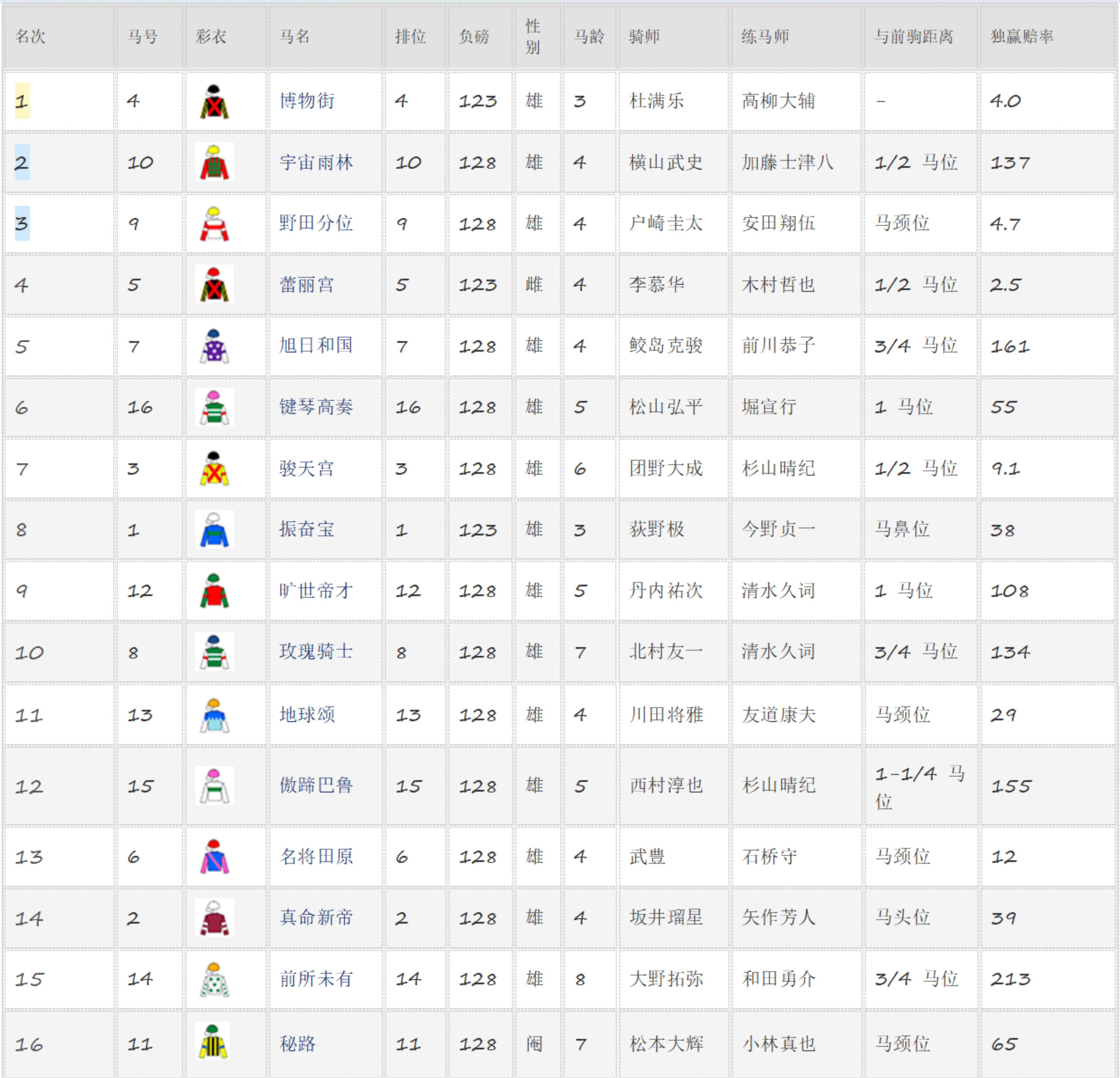 11月30日,日本杯(一级赛,2400米草地)在东京竞马场举行。本届赛事共有18匹赛驹获得出赛资格,但由于“地球颂”(Admire Terra)在开闸后不久便堕马,以及“坚靭力”(Durezza)退出比赛,最终只有16匹马完成角逐。