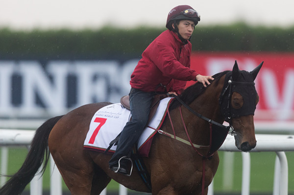迪拜3月26日星期三)罕有地大雨滂沱,但仍无碍将于本周末角逐拜世界杯赛马日赛事的八匹香港赛驹在迈丹马场出操,为周末的大赛备战。