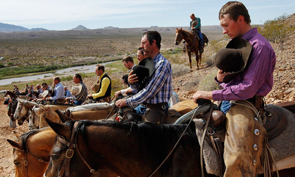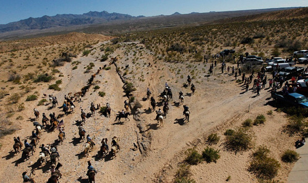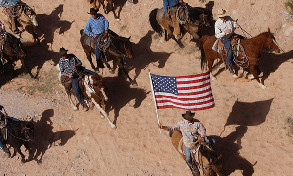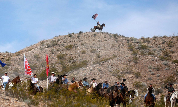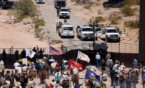 美国内华达州政府因牧场主拖欠土地管理费,要将牧场的牛驱逐出联邦土地,遭到村民自组的民兵队抗议,4月13日联邦政府宣布撤退并将300头牲畜归还牧场主。