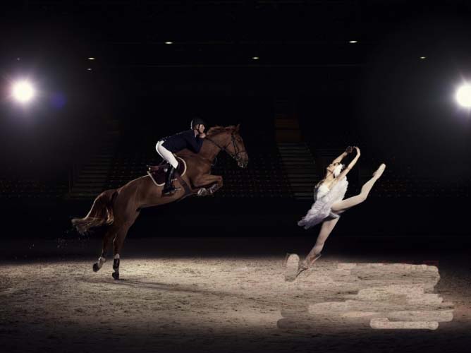 世界排名第一的盛装舞步骑手Dujardin,在2012年伦敦奥运会摘得两块金牌后被誉为“与马跳舞的女孩”,在真正与芭蕾舞演员合作之后,她感慨“我非常非常高兴能在里昂有这么美妙的体验,我完全被夜色中舞蹈演员的天鹅湖给震撼了!”她还透露,这次国际马联盛装舞步世界杯总决赛将会采用全新的音乐与马进行表演。