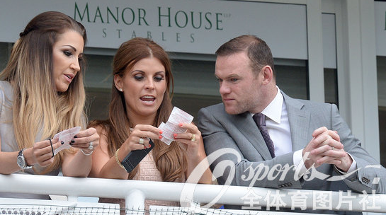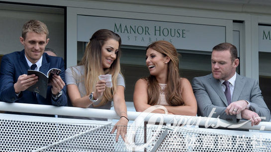58日,2014年英国切斯特赛马会火热举行,英格兰足球运动员鲁尼携妻子科琳现场观战。