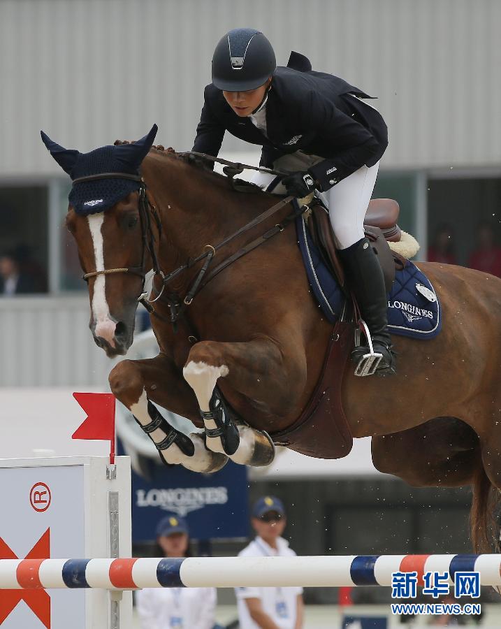 6月7日,瑞士选手菲利普斯在1.6米障碍争时赛比赛中。新华社记者凡军摄