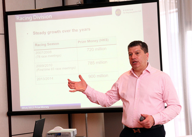 香港赛马的赛事总奖金,将于下年度马季增加百分之七。香港赛马会赛马事务执行总监利达贤今天在沙田马场的新闻发布会上,公布了2014/2015年度马季新赛事奖金及制度的详情。