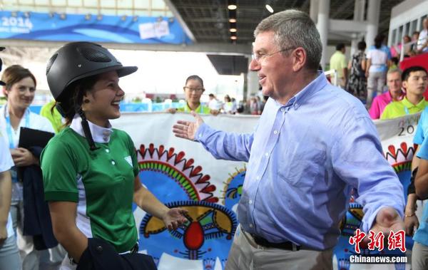 国际奥委会主席巴赫观看青奥会马术比赛