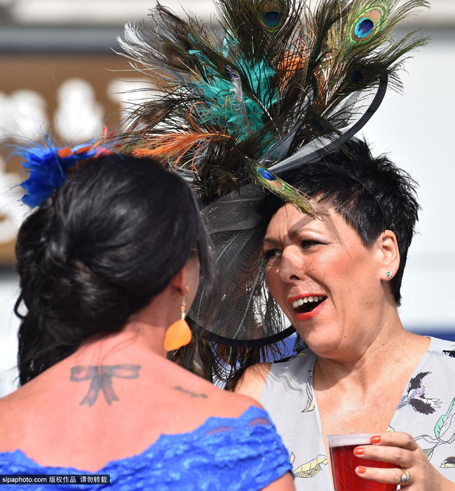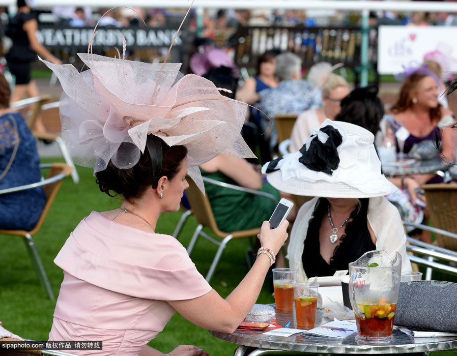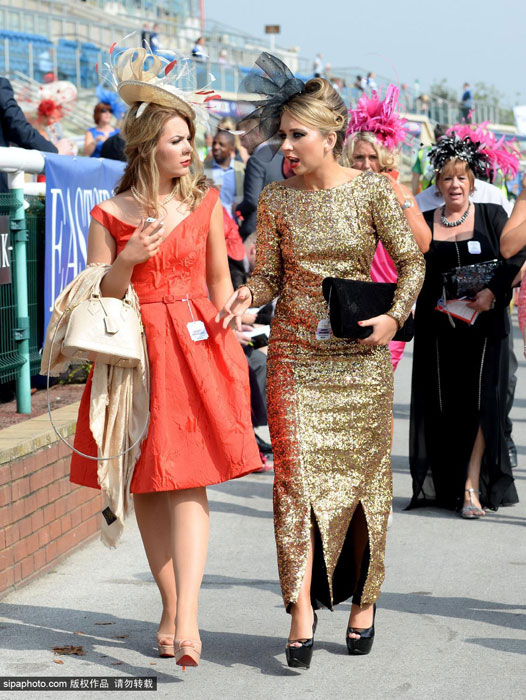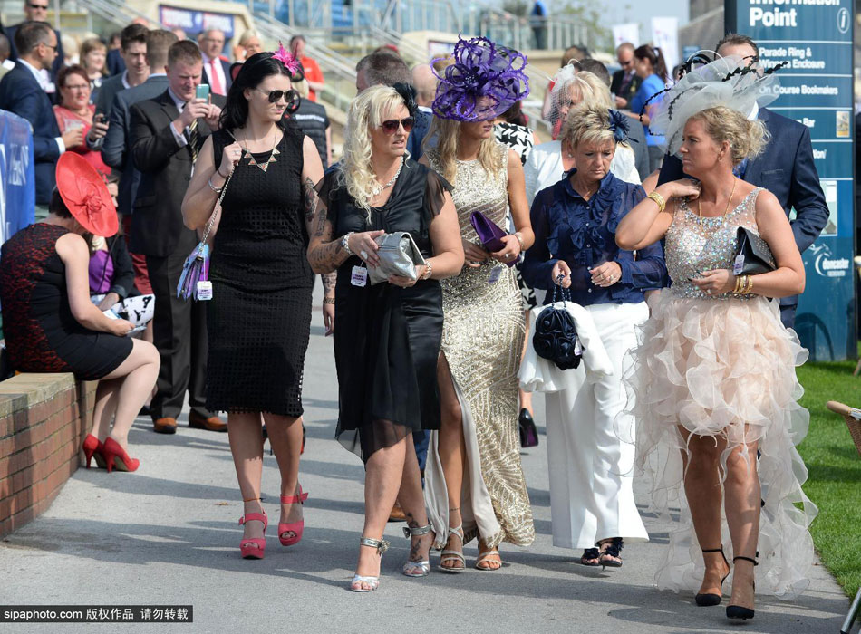 当地时间2014年9月11日,英国唐卡斯特,众女郎盛装出席唐卡斯特赛马场的“女士日”活动。