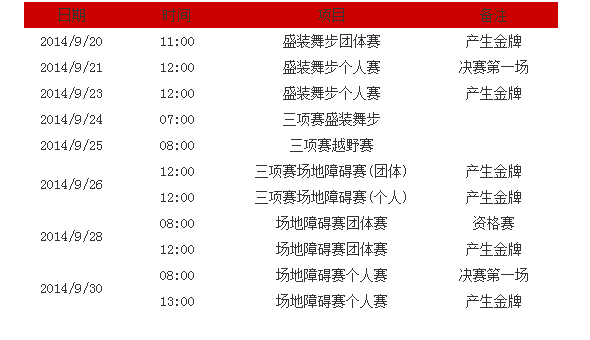 2014年亚运会马术赛程