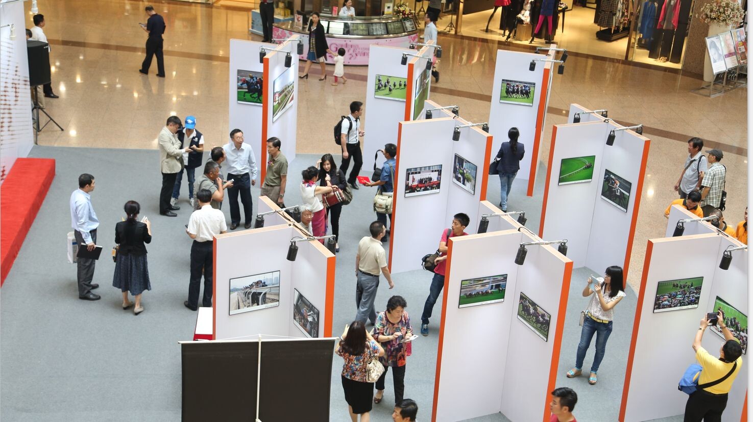 今日,由广东省新闻摄影学会主办、香港赛马会协办的“速度与激情——2014国庆杯赛马摄影大赛”作品在广州中信广场展出。展会活动现场,对评选出的金、银、铜奖共6幅作品的获奖者进行了颁奖。据了解,本次展览会展期共两天(10日至11日),参观者可免费观赏。