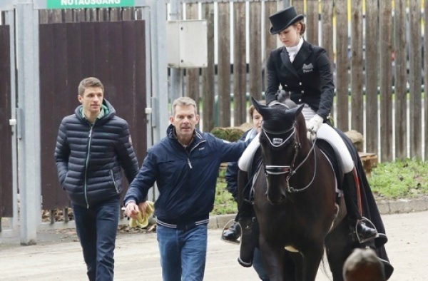在刚结束的德国对阵西班牙的比赛中,拜仁穆尼黑的前锋穆勒受伤离场,他的受伤令拜仁的球迷们担心不已。但是根据队医的检查,穆勒的伤势并无大碍。据德国媒体的消息,穆勒在国际比赛日后过起了休闲的小日子,他陪伴自己的妻子参加了在斯图加特举行的马术比赛,并且还抽时间为德国艺术家Glasl以穆勒为原型创作的一副艺术画做了宣传。