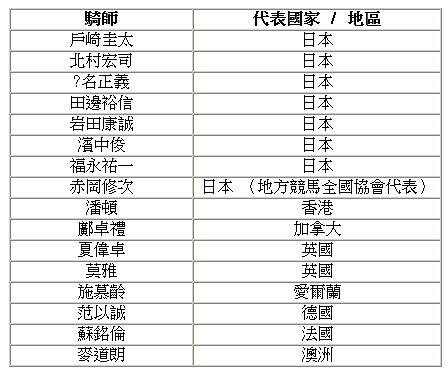 潘顿将于15位来自日本及海外的顶级好手争逐今届世界超级骑师大赛殊荣。当中另外六位参加此系列赛的骑师,包括福永祐一(日本)、施慕龄(爱尔兰)、苏铭伦(法国)、麦道朗(澳洲)、以及夏伟卓及莫雅(英国),两周后将转战香港,参加十二月十日星期三于跑马地马场举行的浪琴表国际骑师锦标赛。