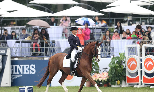12月7日,羊城冬雨绵绵,空气湿润。2014浪琴表中国马术巡回赛香港赛马会杯广州总决赛最后一日的比赛在雨中进行。上午开始的盛装舞步表演赛共有5位广东运动员出场,按最终名词排序依次是顾冰、黄焯钦、谭志勤、黄丽兴和胡子康。身着燕尾服、头戴礼帽的骑手们盛装出场,马儿们的步伐跟随着富有节奏感的音乐不断变换,让人惊叹骑手与马和谐共舞之美。