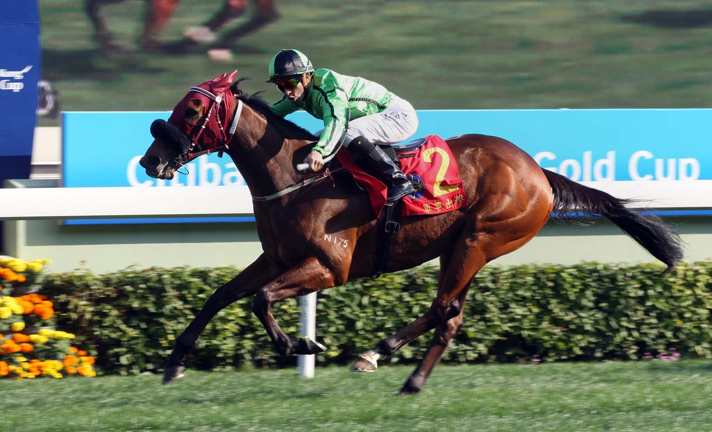 应届香港马王『军事出击』2月23日星期日在沙田马场举行的花旗银行香港金杯中再次展现马王本色,轻取一批本地精英,成功卫冕这项三冠大赛的次关赛事。此驹将会进军三月底迪拜的大赛。
