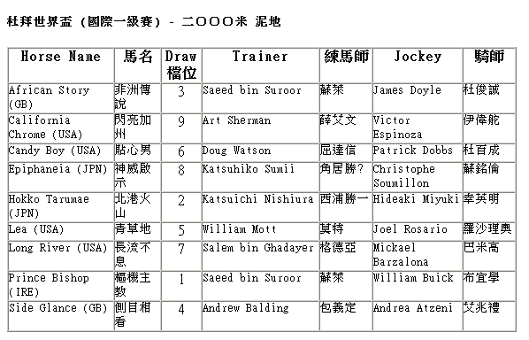 “神威启示”排在2014世界马匹综合排名的前二,又是“日本杯”的卫冕冠军,这样足够强大的实力夺冠也是多了一份希望。