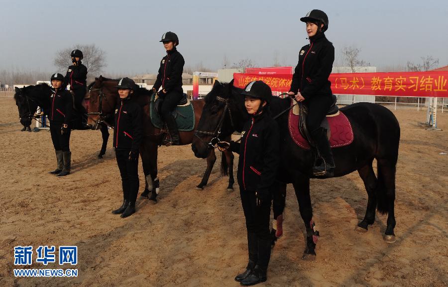 1月14日,山东体育学院6名应届毕业生获得马术专业结业证书。当日,在济南东郊爱马人马术俱乐部,来自山东体育学院的6名应届毕业生,经考试获得马术专业结业证书。该校和济南爱马人马术俱乐部联合开办马术课程,山东首批学习马术的大学生们经过数月刻苦训练,掌握了马匹管理、马术训练等技能知识。结业典礼上,他们表演了马术队列和盛装舞步。据介绍,他们是山东省首批获得马术专业结业证书的大学生。