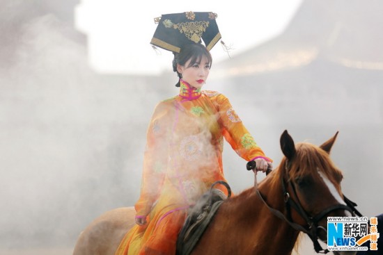 2015年1月22日讯,浙江横店,柳岩、程雷为东方卫视真人秀《巅峰拍挡》助阵,出演霸气惊险的穿越大片。柳岩换上金黄清宫格格服,骑上战马由侍卫牵引,妆若娇花却面带杀气,出演傲娇好战的清宫公主,而刹那间穿越回现代的她,则束起高马尾,穿上黑色的分体运动套装,尽展纤细小蛮腰,好身材呼之欲出。
