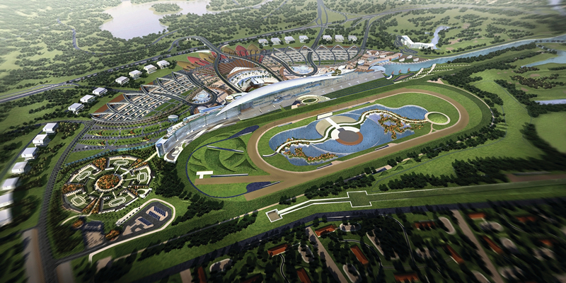 整个马场连同比邻的迈丹城发展计划,占地达6700万平方尺。看台全长1600米、设有餐厅、酒店及赛马博物馆等。迈丹城发展计划包括商业会议设施、285房间的五星级酒店、9洞哥尔夫球场等。