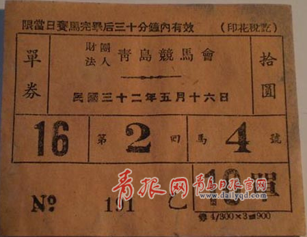 老青岛赛马场:贵妇名媛围观 马票10元(图)