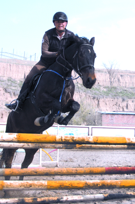 朱进是一位私营企业主,目前在新疆经营着一家健康体检中心。2008年,当时他正在内地考察,无意间看到的一场马术比赛激起了他的兴趣,原来马还可以这样骑呀?赛后通过查找资料,他才知道,这是一项英式骑法的比赛,比赛分为障碍赛和马术赛。从此,自认为在马背上长大、骑马技术一流的他对于骑马有了全新的认识。这项不分年龄、不分性别的运动让他萌生了自己也可以用几年时间成为马术运动员的想法。