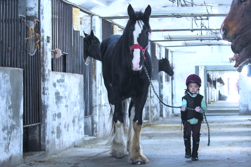 陪4岁的张嘉艺来骑马的刘新环女士告诉记者:“女儿半年来经常缠着我说要来马术俱乐部找朱叔叔玩,其实是为了要骑马,她那点小心思我早就看出来了。”