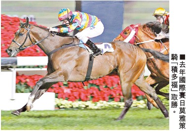 于刚周日的日本杯,莫雅伙拍顶级雌马“贵妇人”进行卫冕,力图连续第三年攻下此赛,结果虽然跑获殿军,但亦虽败犹荣,莫雅于赛后亦不忘向此驹致敬。