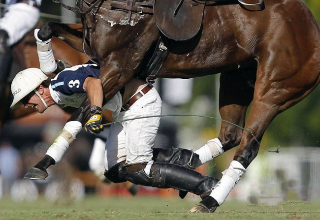 第57届荷赛奖体育动作类一等奖有一个单幅马球的获奖照片《马球比赛摔倒》。照片是在阿根廷马球公开赛上,Pablo Mac Donough从他的马上摔了下来。摄影师是Emiliano Lasalvia。
