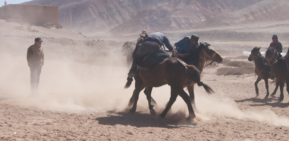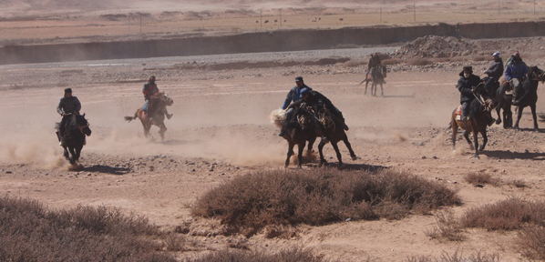 近百名农牧民闻讯赶来观看赛马比赛,50多名选手参加。比赛分为5万米耐力赛、叼羊、马上角力、走马赛。随着比赛号令的想起,脱缰之马飞驰而过,大家你追我赶,纵马驰骋,充分享受着体育运动带来的乐趣,骑手们一边催马飞奔,一边擦拭赛马眼帘周围汗水,一匹匹赛马迎着在场观众一浪一浪的欢呼声,奋蹄直追。叼羊比赛将活动推向了高潮,骑手们表现其灵巧的骑术、勇敢和智慧的同时也表现出了他们所驯养的马匹的素质,充分表现出柯尔克孜马背民族的性格。
