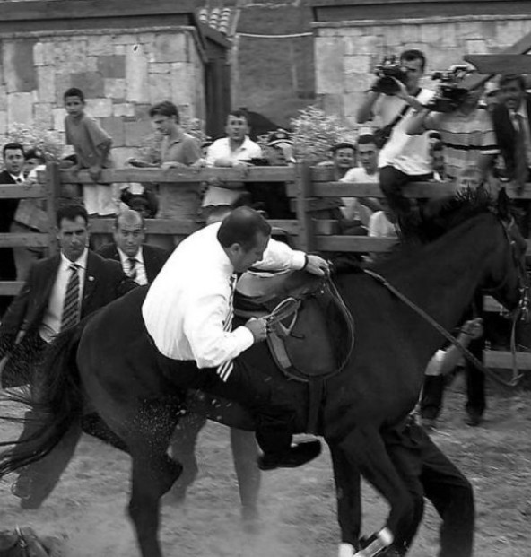 当年《纽约时报》谈到这位总统当选时,特别刊登了首轮竞选活动后他和环境顾问一起在乡间骑马的照片,让美国民众认识一下这位法国领导人。在这张照片里,萨尔科齐一身牛仔装扮,红格子粗布衬衫和蓝色牛仔裤,让美国人觉得很熟悉也很亲切,所以很容易就接受了他。萨科齐尤其喜欢骑白马,他的马是法国南部卡马尔格地区的良马。那里以盛产白马出名,是法国历史上战马的重要来源。