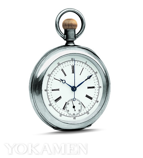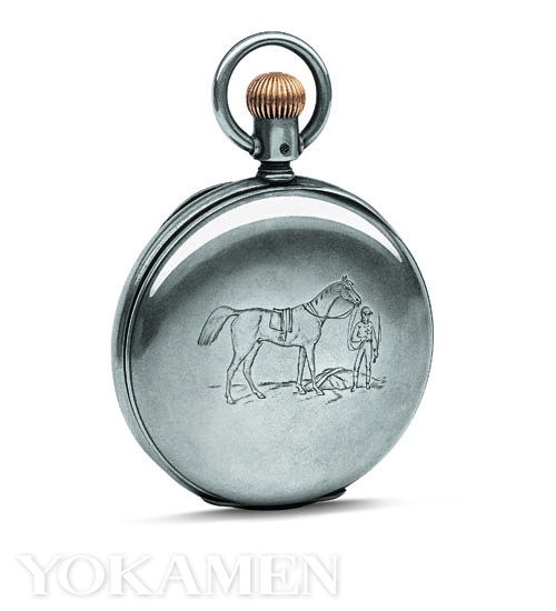 1878年浪琴表生产的一枚计时秒表,表背上镌刻了一位骑手和他的骏马