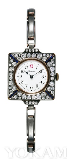 1910年出产的14k金镶钻方形腕表,浪琴表博物馆收藏