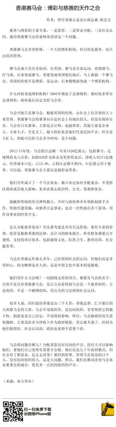 摘要:赛马会成立有历史原因。在英国,赛马是皇家运动,贵族骑马、打马球,后来变成赛马。香港变成英国殖民地后,马上就搞一个赛马会。