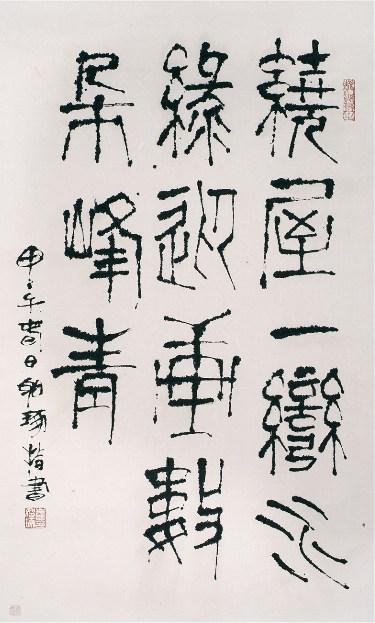 书法—《绕屋一湾水绿 迎轩数朵峰青》 2014年作