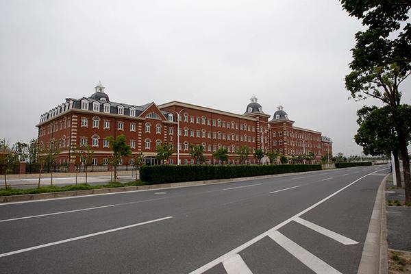 从地铁东方体育中心站出来,向西不远,就可以看到一片英伦风格的建筑群,清一色红砖外墙,白色边沿窗户,屋顶耸立着白色尖顶,这里就是上海惠灵顿国际学校。
