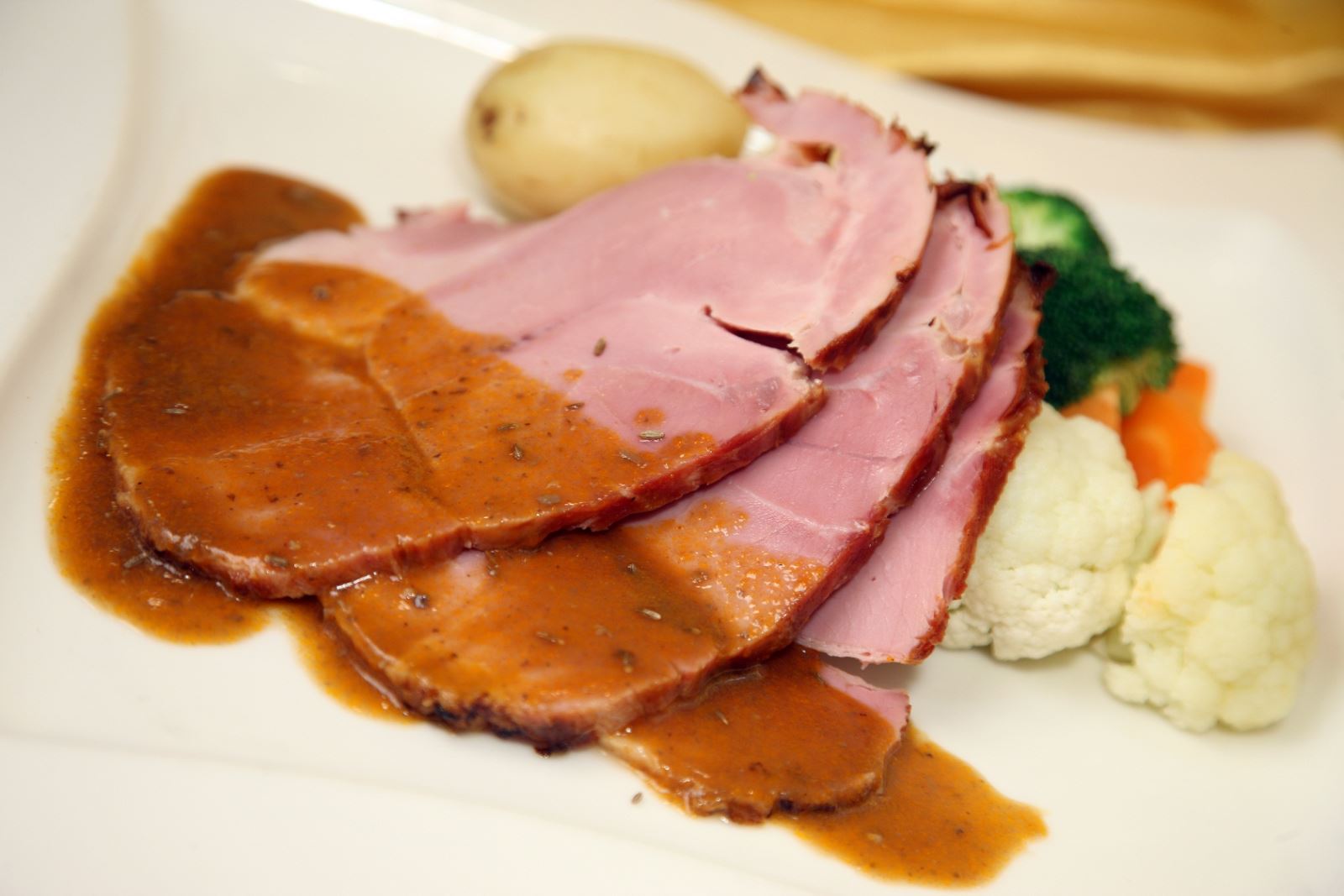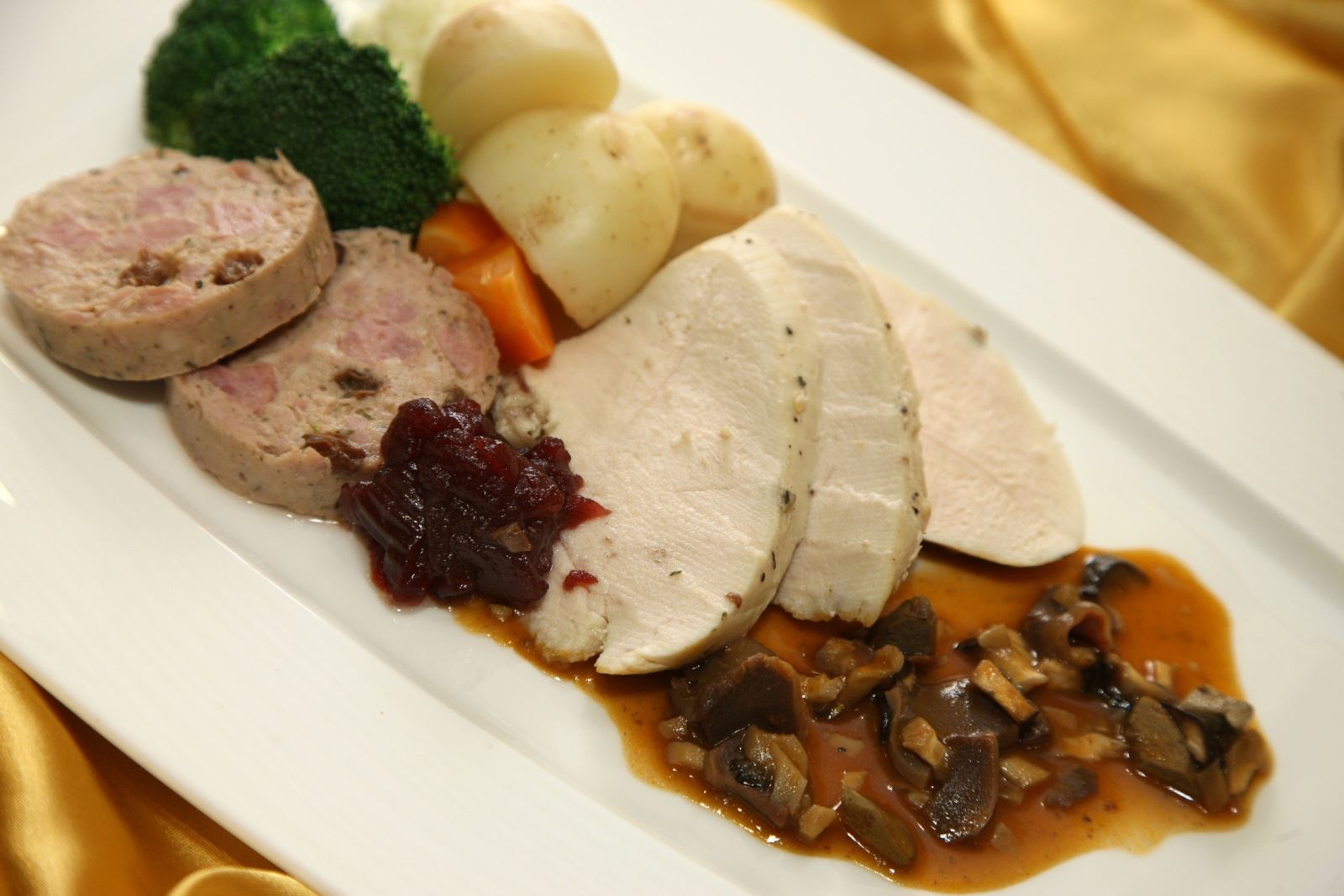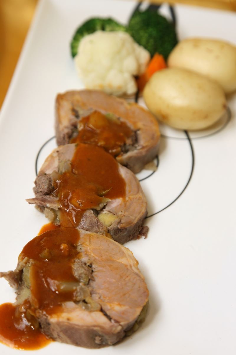 入场人士还可以味蕾体验佳节的来临,因为巧手的马会主厨已准备了多款令人垂涎的圣诞主题美食,在冬日送上最体贴的心意,供各位选购品尝。美食包括磨菇芝士烟肉酿三色甜椒(图5)、苹果大蒜酿羊肩(图6)、蜜烧火腿配香草汁(图7)、烧圣诞火鸡配栗子馅、金巴利汁及烧火鸡汁(图8)及圣诞杯仔蛋糕。