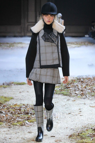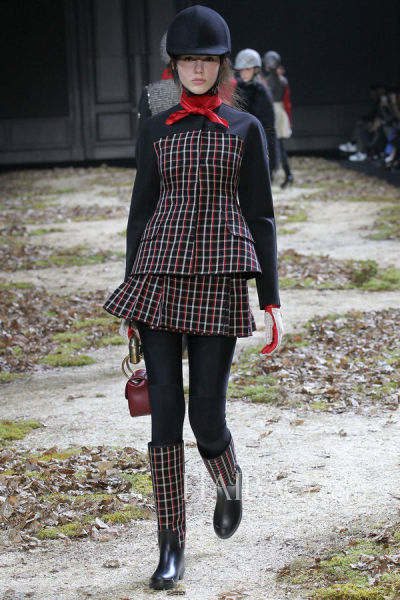 创意总监Giambattista Valli聪明地选择了马球这项贵族运动作为Moncler Gamme Rouge高级女装的灵感——从传统英式狩猎装到现代骑师的制服套装。马球外套、马球头盔和带护膝的Leggings让模特更具活灵活现的现代动感。