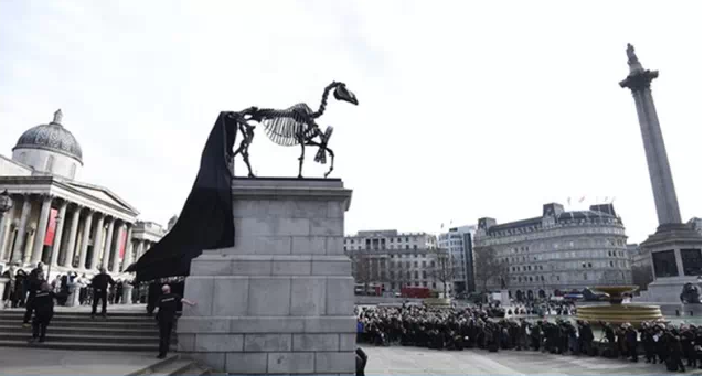 “新任”第四柱基——名为“礼物马”(Gift Horse)的马骨架造型雕塑,体现了伦敦证券交易所的日常元素,在特拉法加广场正式对公众展出。伦敦市长鲍里斯·约翰逊评价其为——对“艺术与商业”惊人而独到的见解。