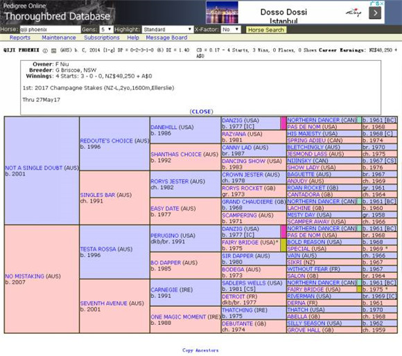 ▲“骐骥凤凰”血统表为例,图片来源pedigreequery。