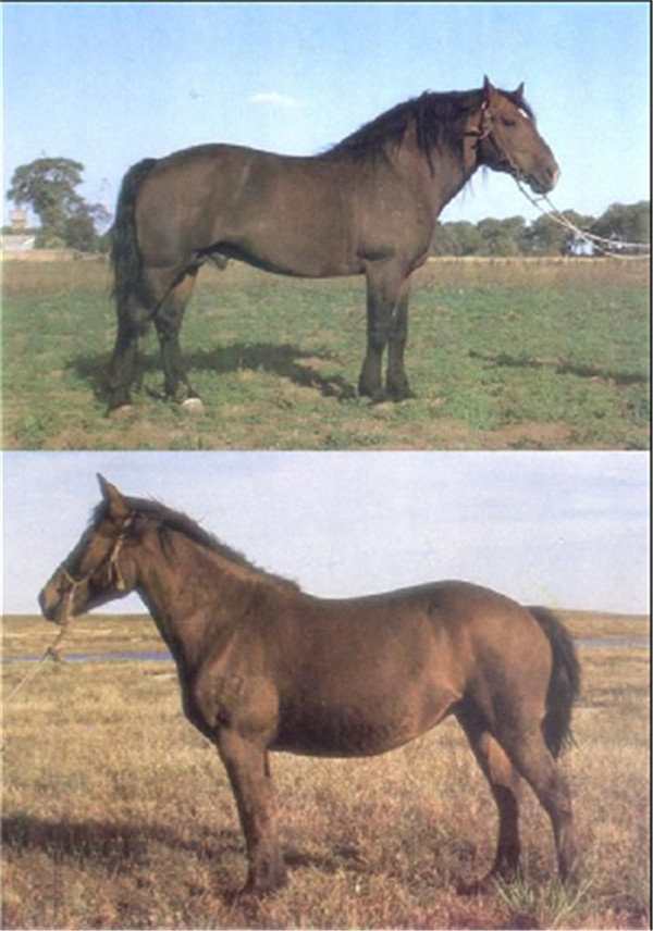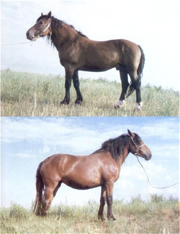 黑龙江马:主要分布在黑龙江省的松嫩平原,体型稍轻,肋张良好,舍饲、放牧饲养,抗寒力较强,体质结实,较干燥,有悍威,性情温驯,结构匀称。