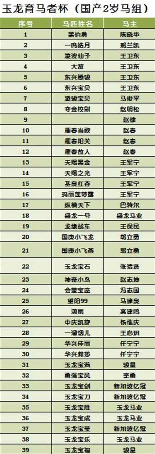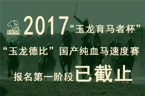 截止本周四(2017年6月15日),由右玉县人民政府、山西玉龙马会赛事有限公司主办的2017年“玉龙育马者杯”国产2岁马组、“玉龙德比”国产3岁马组国产纯血马速度赛第一阶段的报名已结束,目前共有30位马主的54匹赛驹报名参赛,从6月16日起,该项赛事报名费增至5万元人民币/每匹,第二阶段的报名截止日期至7月31日。