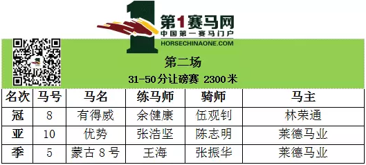 第二场 14:45 2 31-50分让磅赛 2300米(最高负磅58公斤)