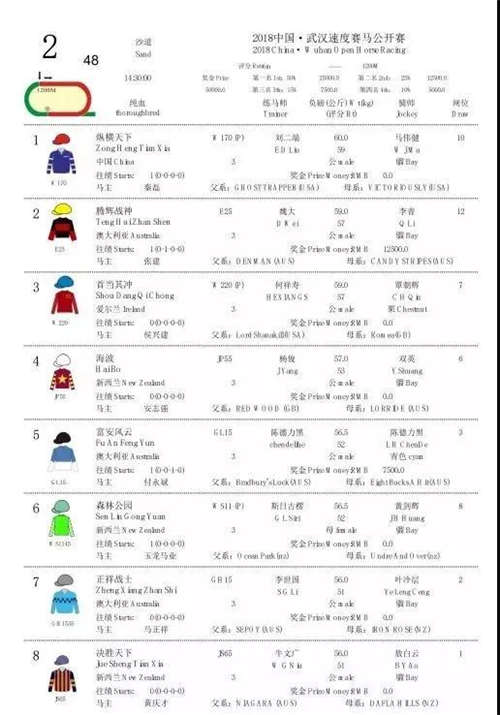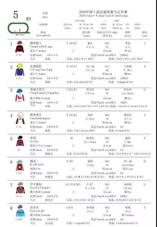 第一场 2018中国·武汉速度赛马公开赛 1200米 (75-55)三/四班 ▲点击查看高清图片 第二场 2018中国·武汉速度赛马公开赛 1200米 未获头马 3岁马组 ▲点击查看高清图片 第三场 2018中国·武汉速度赛马公开赛 1100米 2岁马组 ▲点击查看高清图片 第四场 2018中国·武汉速度赛马公开赛 1000米 3岁及以上 伊犁马组 ▲点击查看高清图片 第五场 2018中国·武汉速度赛马公开赛 1700米 3岁马组 ▲点击查看高清图片