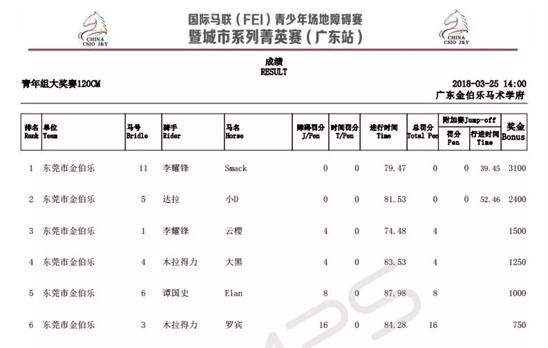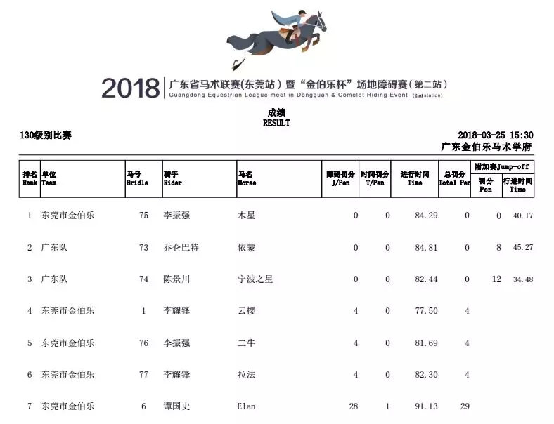 今天(3月25日),“2018国际马联(FEI)青少年场地障碍赛暨城市系列菁英赛广东站”暨“广东省马术联赛第二站”的第二日赛事在东莞长安金伯乐马术学府圆满落下帷幕,经过一系列比拼,骑手李永杰、罗超、张锶檑、木拉得力、李耀峰、李振强分别拿下今日各项目冠军。