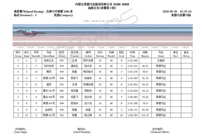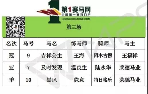 第三场赛事,五班平磅赛,途程1000米,和第二场一样,本场出战马匹都为国产马,其中9号马“吉祥公主”在亮相圈时就十分突出,开闸之后一直领先,在最后冲刺时更是以40个马位的优势率先冲过终点,问鼎冠军。
