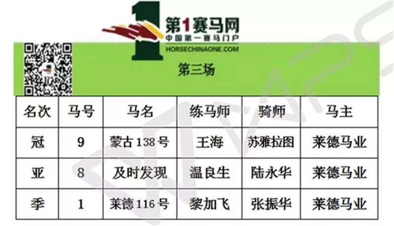 第三场赛事,五班平磅赛,途程1000米,因为都是国产的质新马且都为初次出赛,没有以往赛绩为了参考,要从一众赛驹中选择出心水马还是颇有难度。本场8号马“及时发现”在亮相圈时便给人耳目一新,让人充满期待。开闸之后,9号马“蒙古138号”从最外档挑准时机,向内切入,占据优势位置,与8号马“及时发现”在前半程互不相让。一直到距离终点还有两百米时,;两匹赛驹之间的才拉开距离,最终“蒙古138号”率先冲线,“及时发现”憾得第二。